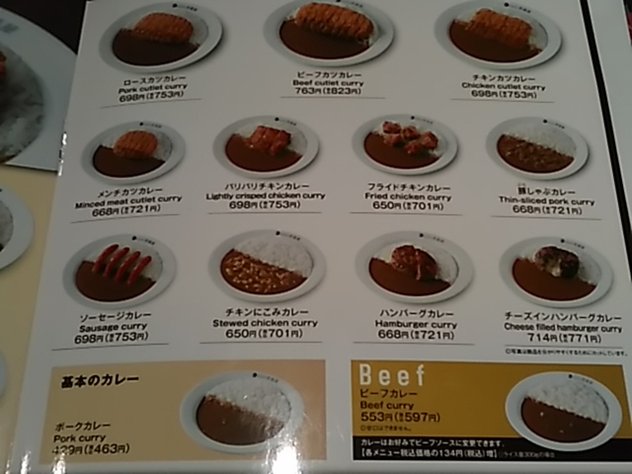 4号線名取バイパス沿いにあります。カウンター9席、テーブル24席位です。基本のポークカレーが463円で、それにトッピングしていく感じです。ご飯は300グラム迄が基本料金で、100グラム毎に103円増し、辛さ1つ足す毎に21円増しです。今回、頼んだのは、とん勝つカレー半熟タマゴタルタルソース1049円(税込み)です。半熟卵がたまりませんでした。ご飯増量にしなくても、お腹いっぱいになりました。辛さが普通で物足りない時は、振りかけタイプのとび辛があるので、足して下さい。十分辛いです。