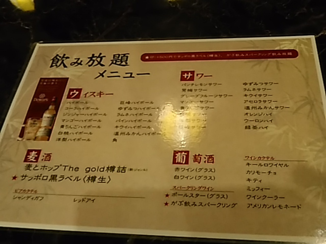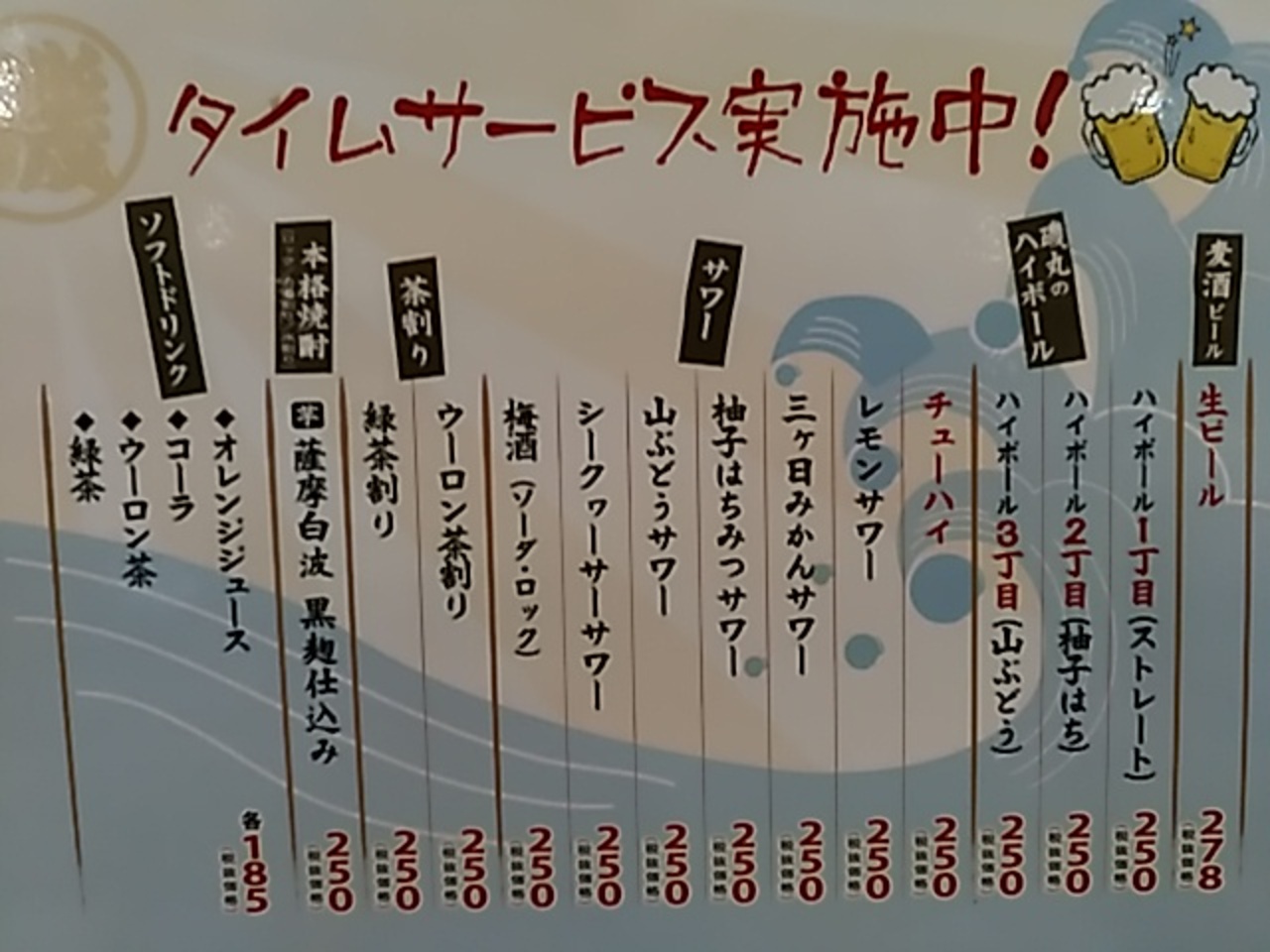 (わさび房)飲み放題が二時間半だったので、ゆっくり飲むことができました。お勧めです。