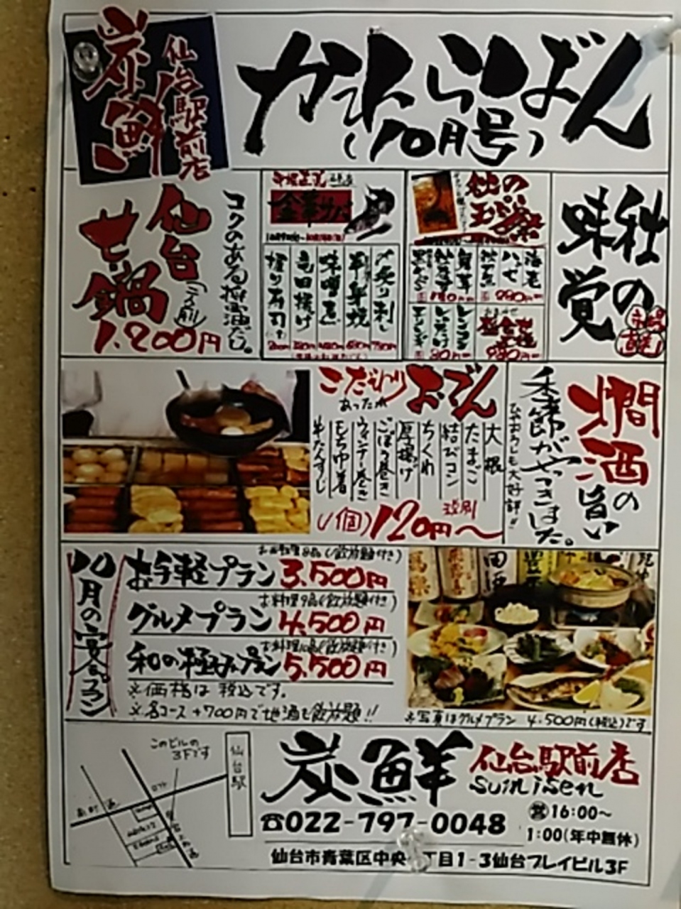 (磯丸水産)三越近くの一番町にあります。24時間営業です。