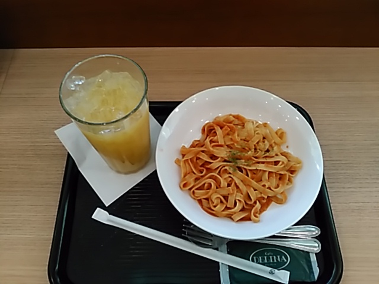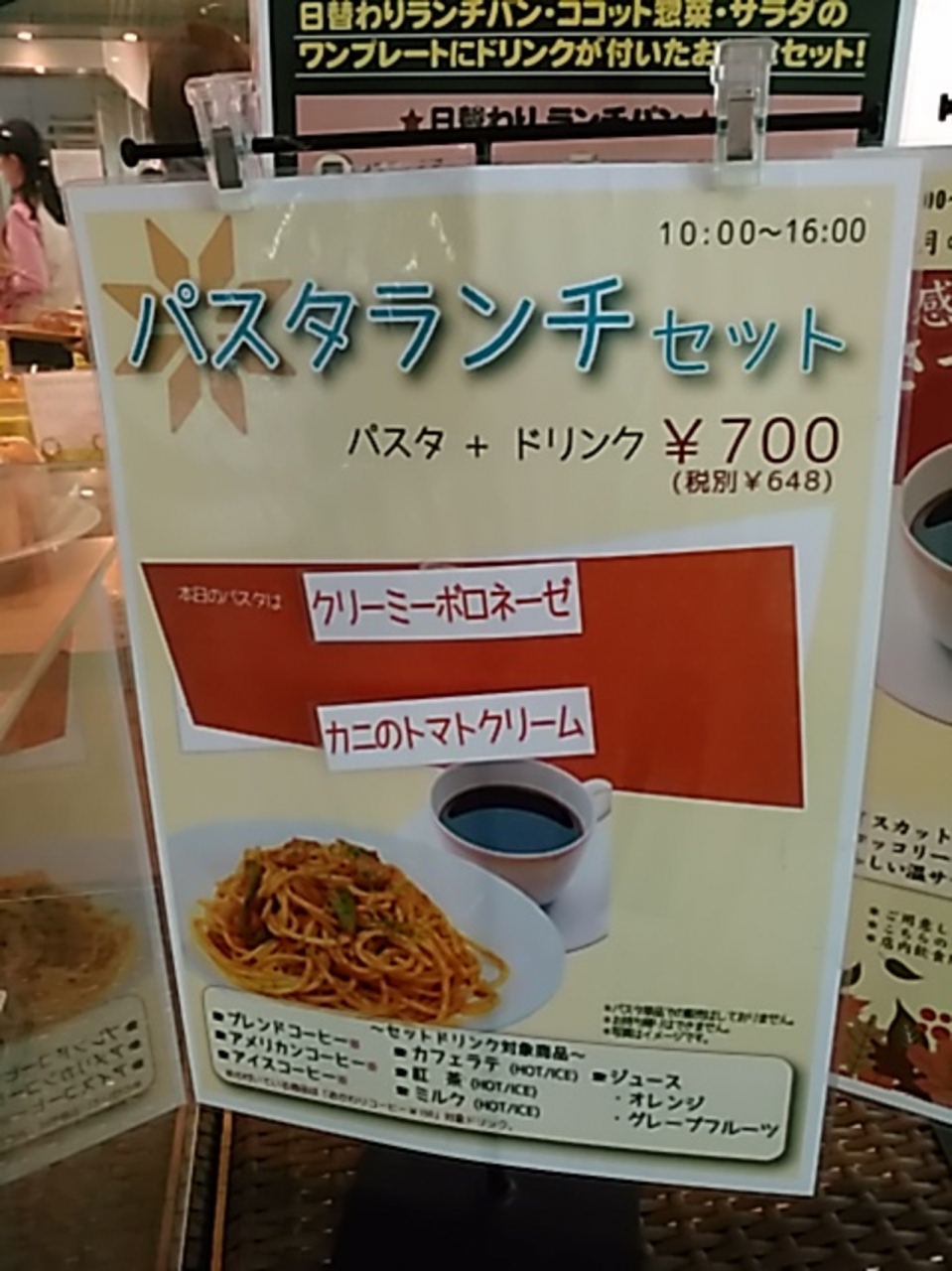 東二番丁通り沿いのタワービル1階にあります。店内は明るく過ごし易い雰囲気です。店の奥が喫煙席になっています。今回は、パスタランチセットにしました。本日のパスタにドリンクで700円です。本日のパスタはカニのトマトクリームのパスタかクリーミーボロネーゼのどちらか1つです。カニのトマトクリームを選びましたが、麺は平麺で、味は薄味、量は少な目でした。女性向けかなと言う感じです。
