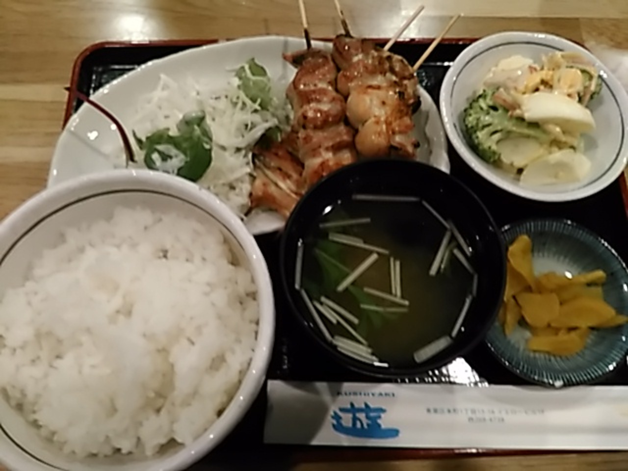 (串焼遊)ランチは焼鳥定食、焼鳥丼、豚焼定食の三種類で700円位です。