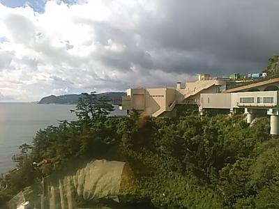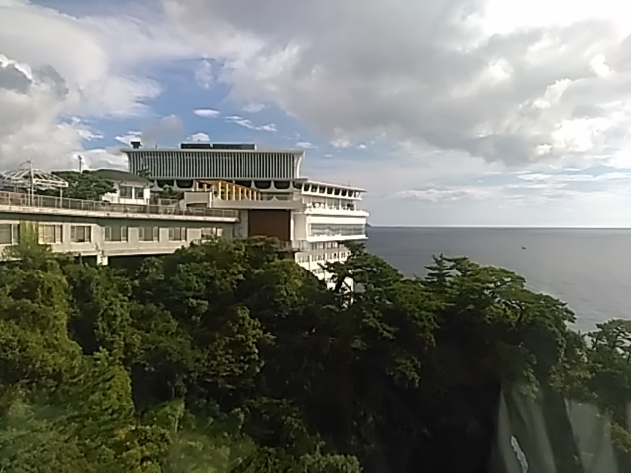 熱海駅から南に車で10分位の所にあります。ホテルに着いた所がフロントですが17階です。今回は、5階の部屋でした。浴場は1階と15階にあります。15階のスパリウムニシキは今年の4月にオープンしたばかりでオーシャンフロントビューです。宿泊棟からは離れていて少し歩きます。朝に入った男湯の露天風呂の前には松があり邪魔でした。夕食はバイキングではなく、メキシコ人グループの歌謡ショーを聞きながらのコース料理で、良かったです。