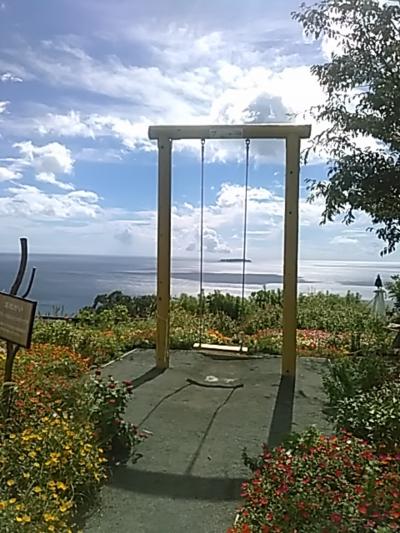 ガーデンへは入り口の無料駐車場に車を置いて、園内専用のバスで行きます。園内は20万坪以上の広さがあるそうですが、バスで行く所は園内の一番奥です。その一番遠い所にCOEDA HOUSE があります。アカオハーブ&ローズガーデンはCOEDA HOUSEと海と空のガーデンテラスで有名になりました。COEDA HOUSEは有名建築家の作品で、周りの景色ともマッチしています。ガーデンテラスやブランコも素敵です。