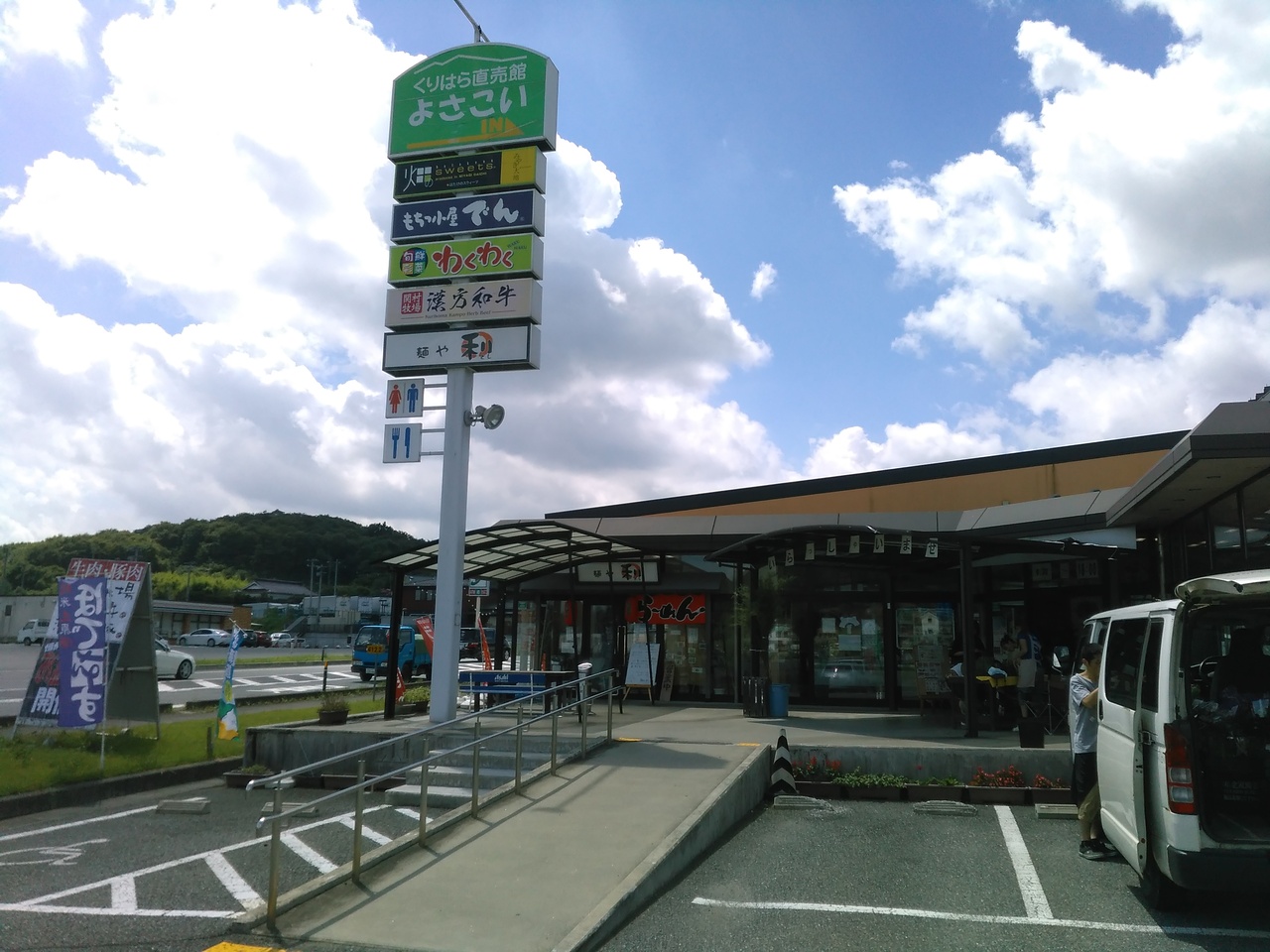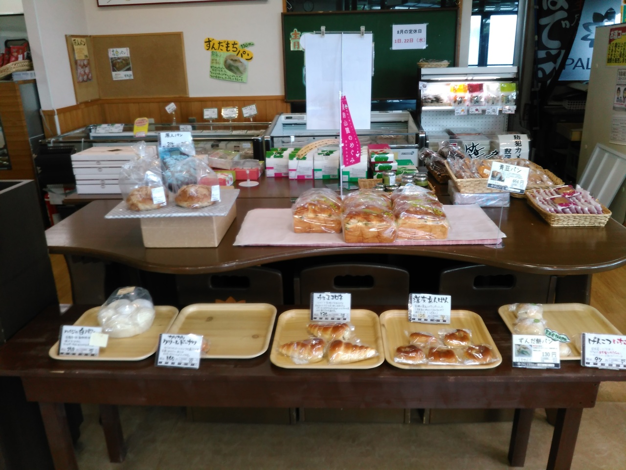 よさこいは、築館インターチェンジ近く、国道4号線沿いにあります。向かいはガソリンスタンドです。よさこいの中には、パレットの売場の他に、産直や漢方牛売場、ラーメン売り場等があります。パレットでは、青豆パンやずんだ餅パンがお勧めです。