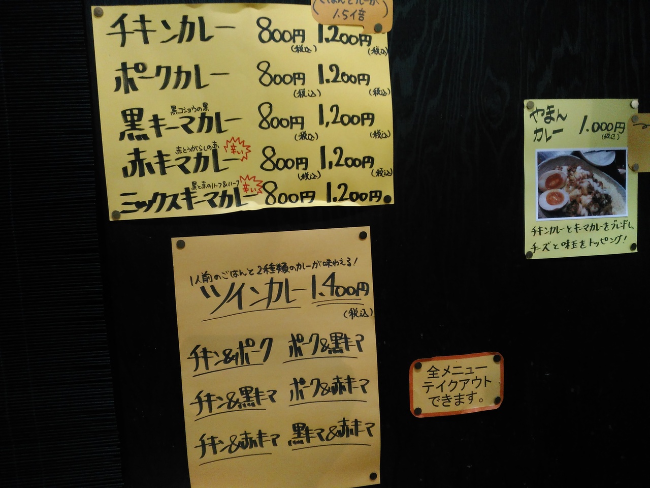 (yaman )カレーは大雑把にキーマとチキン、ポークの三種類で800円です。