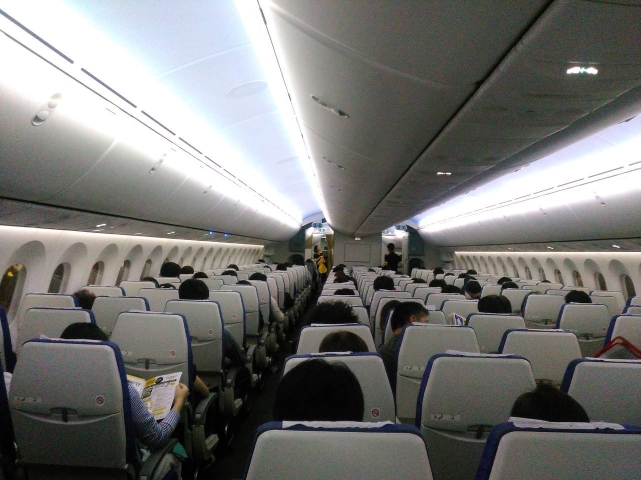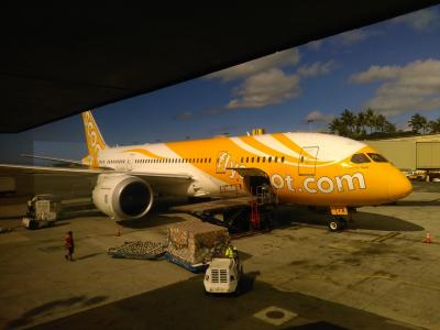 今回、初めてスクートを利用しました。9人掛け41列350人乗り位で、LCCにしては大きい飛行機でした。90%位の搭乗率で人気のようですが、窮屈感は感じませんでした。