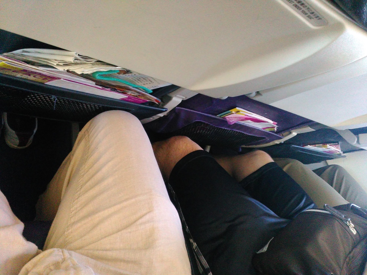 機内はエアコンが効きすぎで寒く、ブランケットを有料で頼むようにしているな設定と勘ぐってしまうほどです。テレビ、ラジオがないため、時間潰しに本やビデオの持ち込みが必要だと思います。