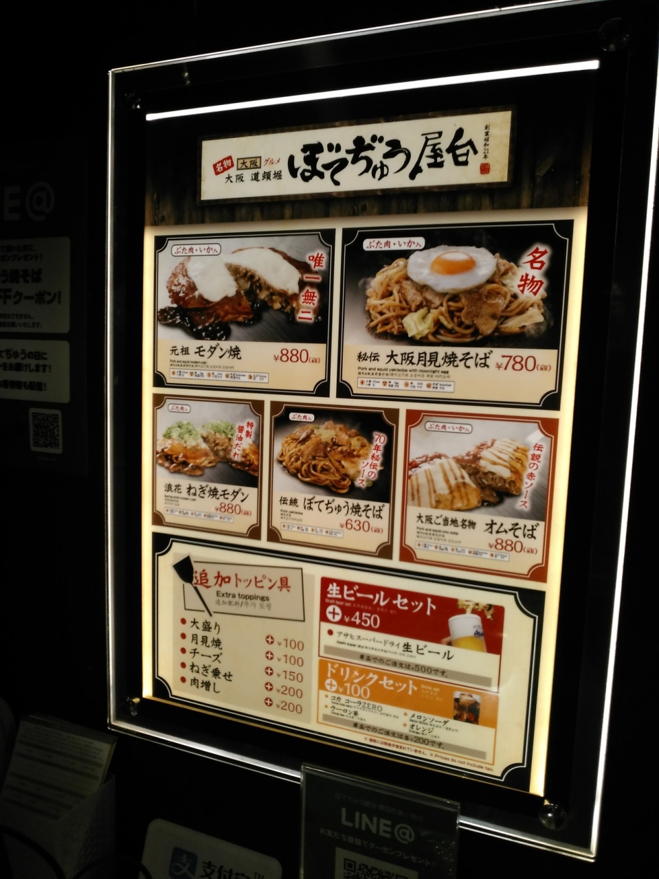 (ぼてぢゅう)メニューはモダン焼きが2種類と焼きそばが3種類です。
