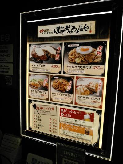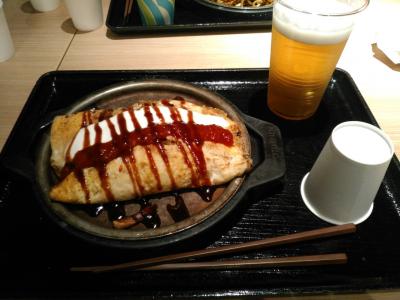 関西空港第1ターミナルの二階にあります。メニューはモダン焼きが2種類と焼きそばが3種類です。店頭で注文して出来上がりをブザーで知らせてくれます。食べるのは、フードコートで食べます。今回は、オムソバのビールセット(1330円)をいただきました。ビールと相性バッチリです。