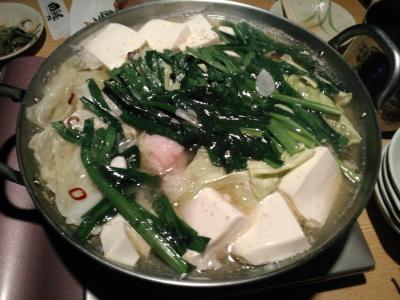 今回は、牛タンともつ鍋が付いて飲み放題込みで4000円のコースを頂きました。もつ鍋は〆に麺で頂きました。
