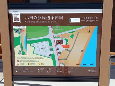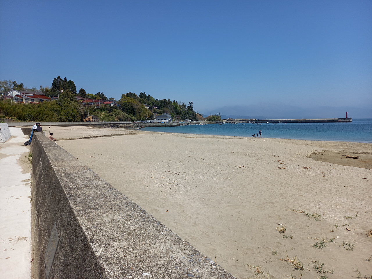 小田の浜海水浴場は大島の東部にあり、海水浴場です。かつては環境省選定の「快水浴場百選」で特選に入るなど、美しい景観と水質環境は高い評価を受けていました。東日本大震災で大きな被害を受けましたが、平成24年に県内でいち早く海開きを行うことができました。目前の大前見島が風を遮るため、波静かな遠浅の海水浴場となっています。大島の海岸でおかえりモネのロケが行われていますが、ロケ地はここではなく田中浜です。無料の駐車場がすぐ向かいにあります。