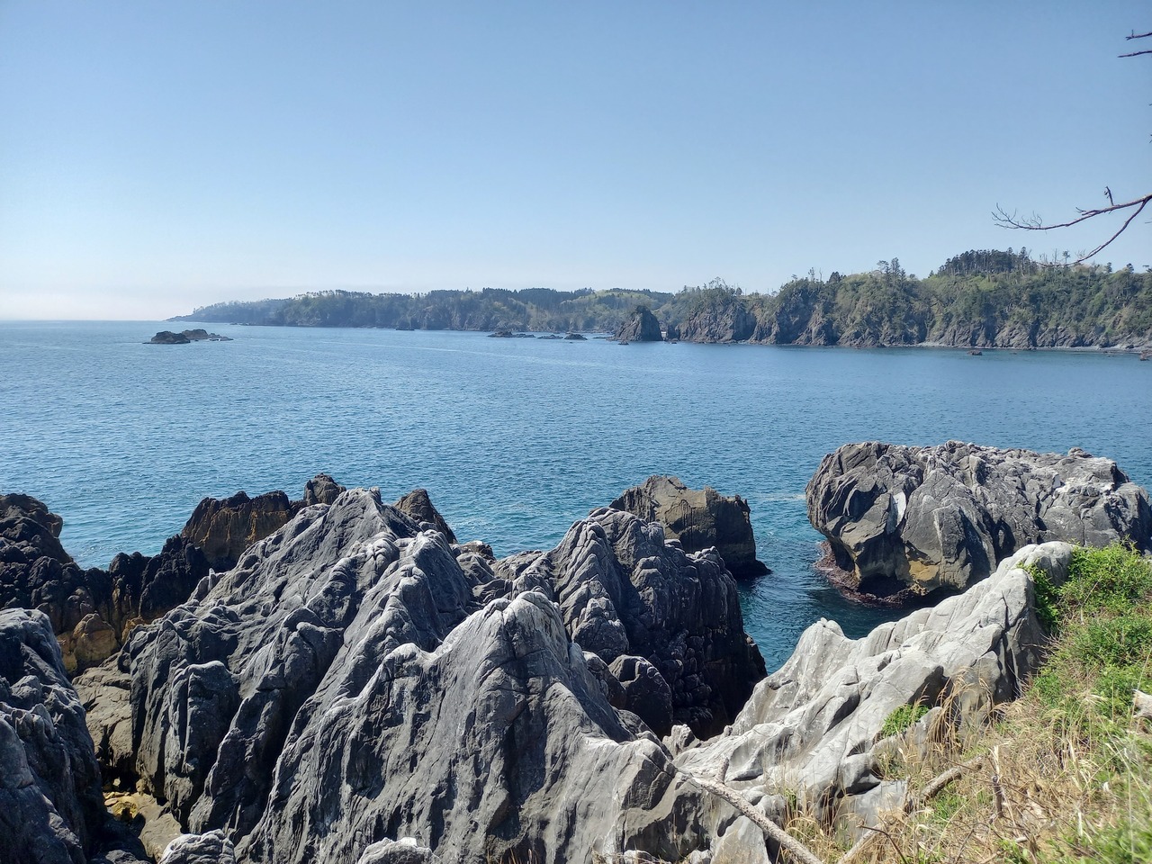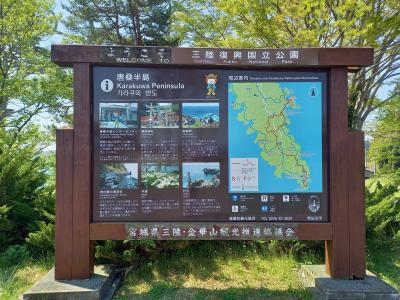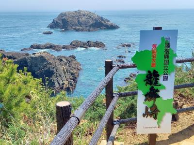 気仙沼大島の最南端にあり、島を代表する景勝地で、岬の先端には龍舞埼灯台があります。そこからの荒波の眺めは、まるで龍が舞い上がるように例えられています。龍舞崎には、乙姫窟などといった名勝もありますが、行った日は立ち入り禁止でした。龍舞崎と小田の浜海水浴場を結ぶ遊歩道も整備されています。