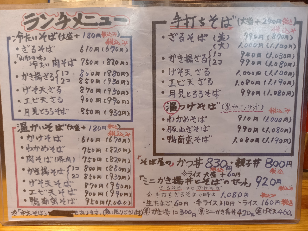 国道45号線の北側の路地入ったところにあります。店内はカウンター6席、テーブル10席です。蕎麦屋さんです。ランチメニューはざるそばが670円からあります。手打ちのざるそばは870円です。ご飯類はカツ丼と親子丼位です。今回は山形の味、冷たい肉そば820円をいただきました。今までの中で一番しょっぱかったです。汁通常は飲み干しますが、残してしまいました。肉は親鳥独特の堅さはありましたがコリコリ感は少なかったです。店員さんの片付けの際の音がうるさかったです。