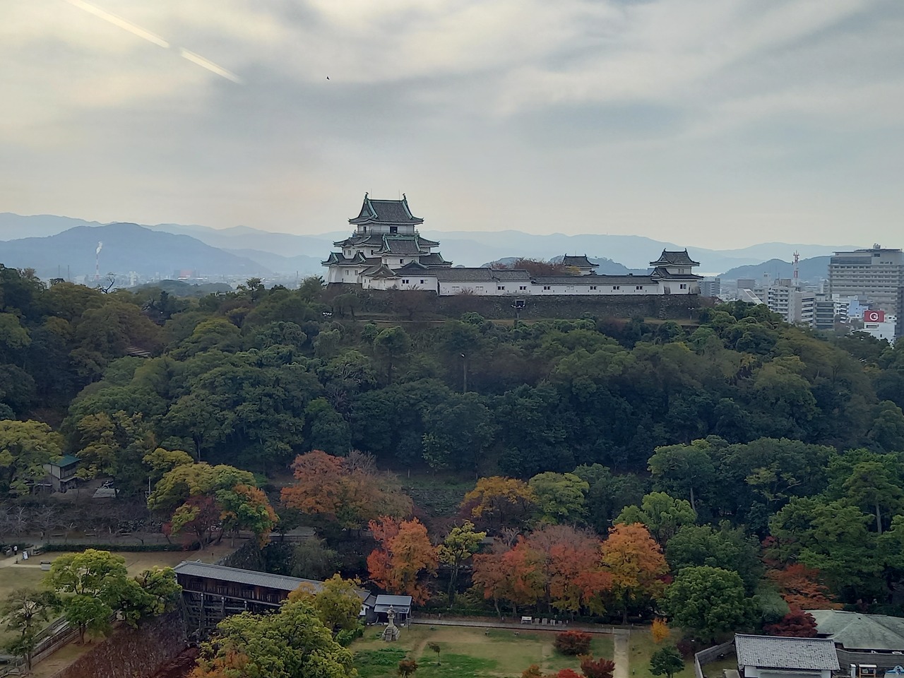 南海和歌山市駅から徒歩10分位の所にあり、和歌山城を中心とした公園です。公園内には、観光協会や市観光案内所、動物園もありました。行った11月の期間は公園東側で菊花展も行われていました。公園内からのお城のお勧め撮影スポットは、御橋(おはし)廊下越しの景色、本丸からの眺めです。
