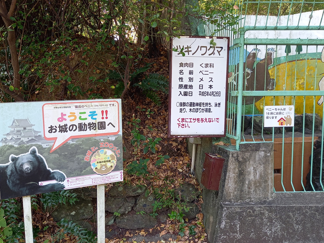 最寄りの駅は南海和歌山市駅です。名前の通り、和歌山城公園内にあり、場所的には公園の南側です。ツキノワグマのベニーちゃんが園長でペンギンやビーバー、さるなどがいます。こじんまりとした動物園ですが、無料です。小さい子ども連れには良い動物園だと思います。