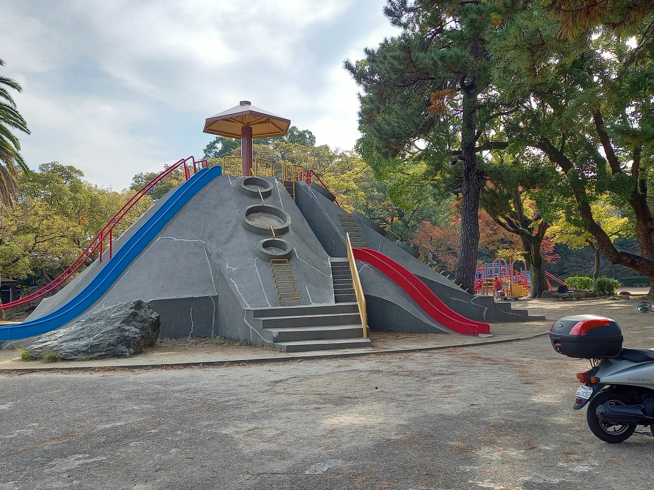 岡公園は和歌山城の南側にあります。和歌山が陸奥宗光の生誕の地となっており、公園内にはその功績を称える陸奥宗光像があります。その他に、紀州藩士の長屋門や紀州徳川家の家老の茶室、遊具などがありました。遊具の中では滑り台が急と言うのが話題になっている様でした。