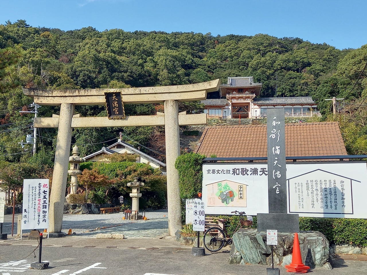 ここには、学問の神様である菅原道真が祀られています。菅原道真が大宰府に向かう途中、波風を避けるため和歌浦に船を停泊した際、神社が鎮座する天神山で和歌の浦の歌を詠んだのがきっかけの様です。大宰府天満宮、北野天満宮と並び日本の三菅廟といわれています。楼門は一間楼門として最大規模で、そこから眺める和歌浦は壮観です。和歌の浦を見下ろす高台にあることから眺望絶佳の天満宮とも言われています。階段が結構急なので焦らず登ってください。