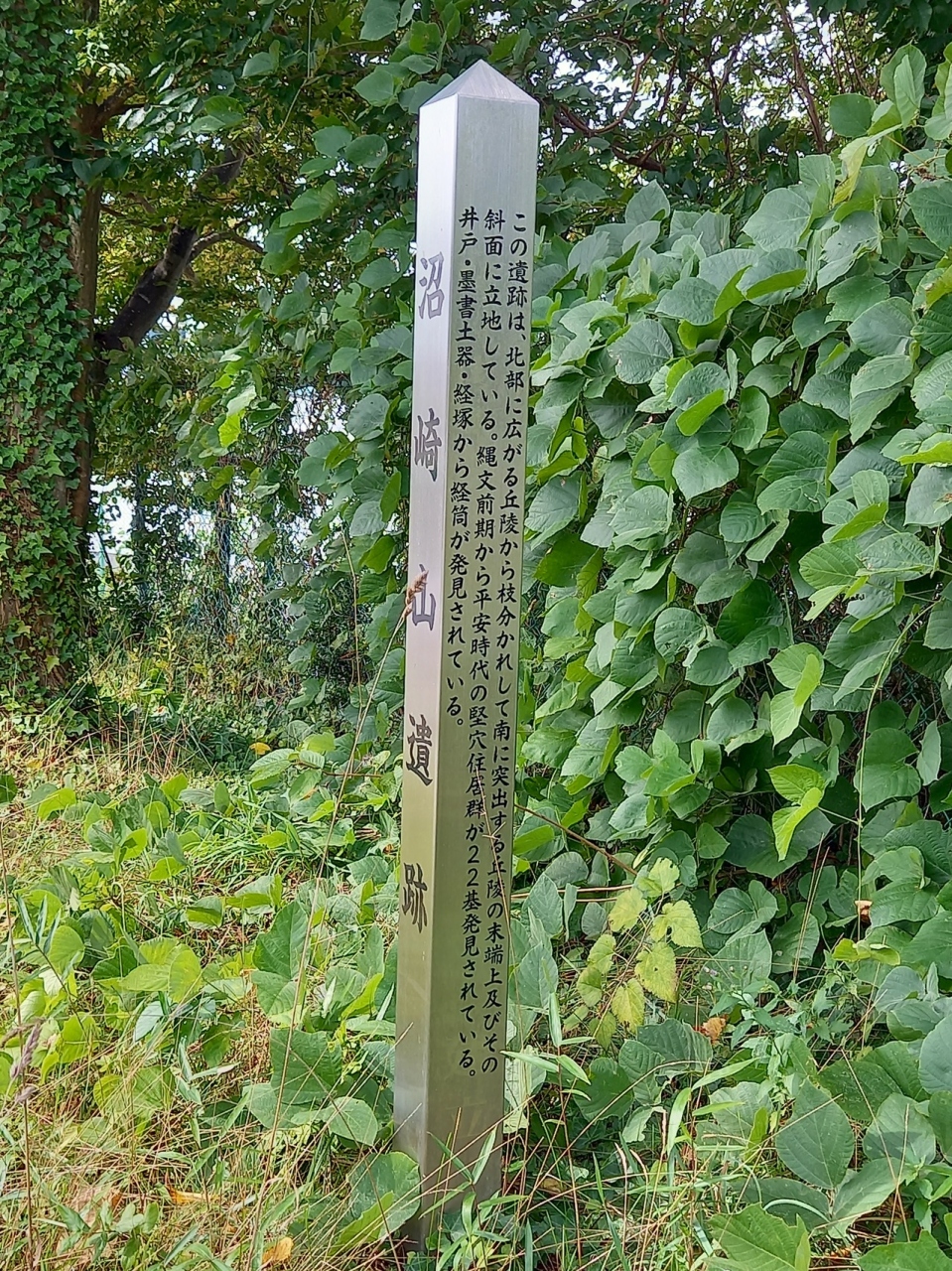 • (沼崎山遺跡)上り坂の入り口付近に遺跡の標柱が建っています