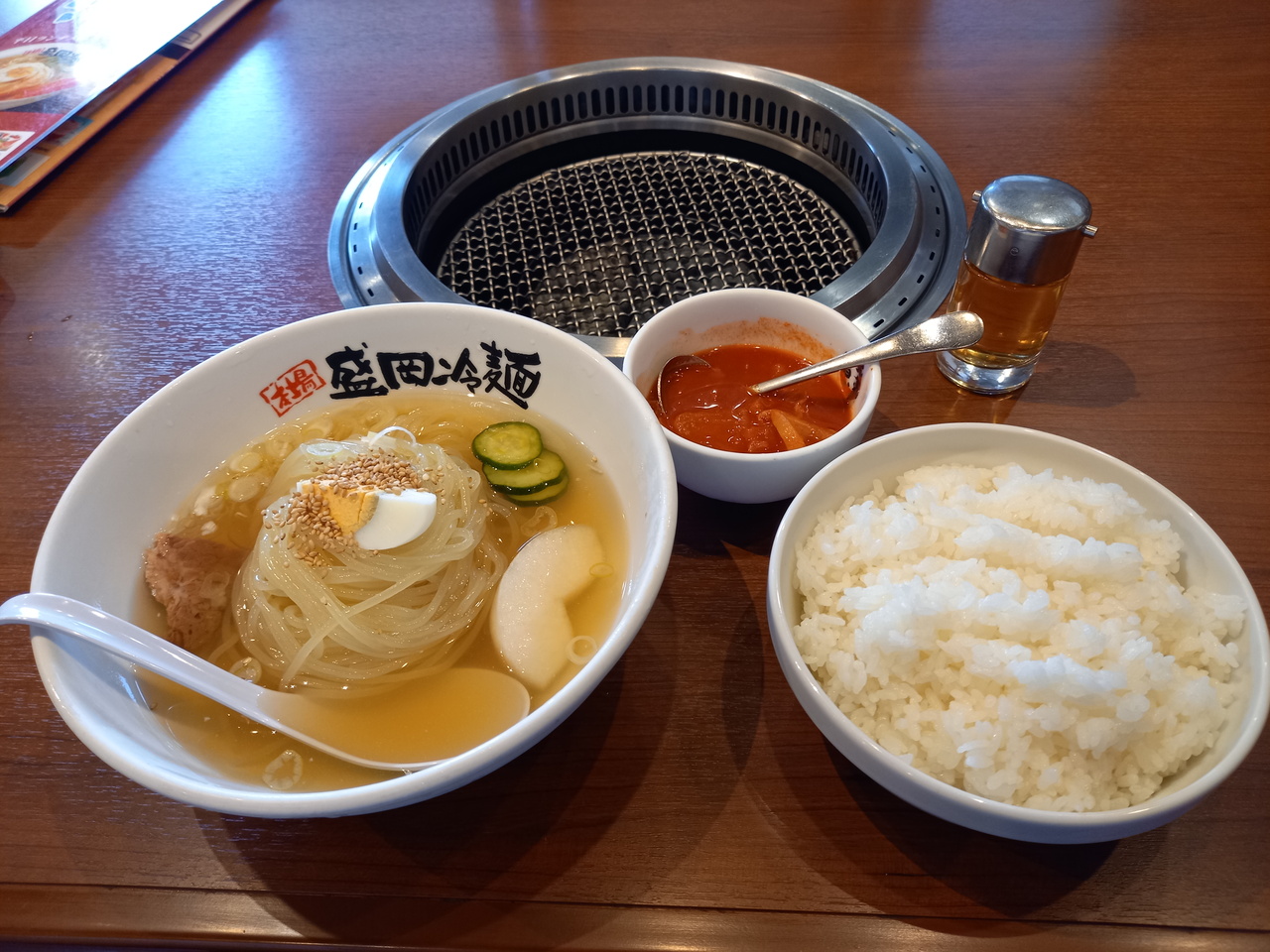 6ヶ月振りの来店です。10月なのにって感じの暑い日だったので、冷麺をいただきました。今回も勢いでよくばりセット550円の大盛(220円増し)にしました。ライスは頭に乗って大にしてしまいました。冷麺は安定の味でした。ライスは予想以上に多く食べきるの大変でした。次回からは中止まりにしたいと思います。