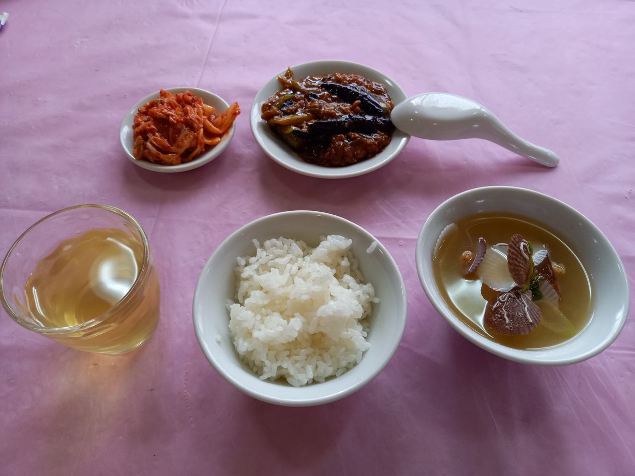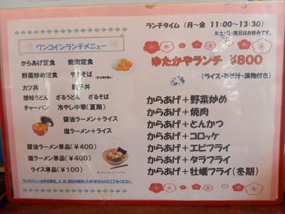 登米市豊里町の小中一貫校の東側にあります。普段は11時開店ですが、行った日は30分遅れの開店でした。それでも11時には9人が駐車場で待ってました。平日は、ワンコインランチと、ゆたかやランチ(唐揚げ+おかずもう一品)800円があります。焼肉定食や唐揚げ定食が人気です。今回はワンコインランチの野菜炒め定食をいただきました。本当に野菜のみの炒めものでしたが、十分でした。