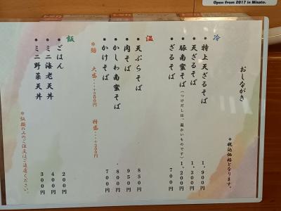 登米市役所の近くにあります。店内はカウンター4席、テーブル12席と外観よりこじんまりしています。メニューは、かけそばざるそばが700円からあります。特上天ざるは1900円です。今回は、ざるそば700円にミニ野菜天丼300円をいただきました。そばのコシは良かったです。どちらもボリュームは小でした。