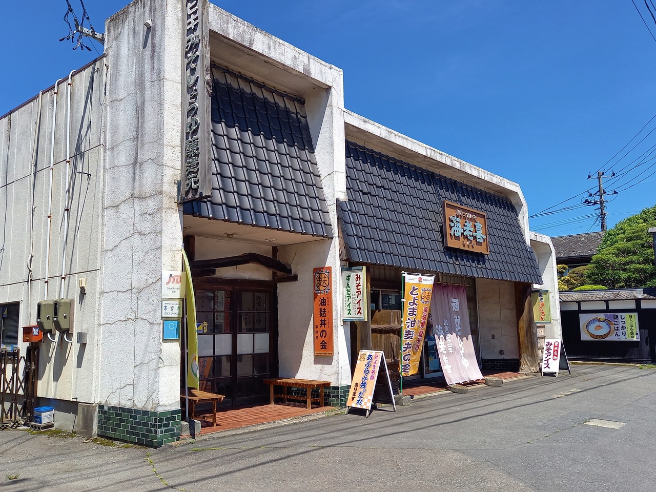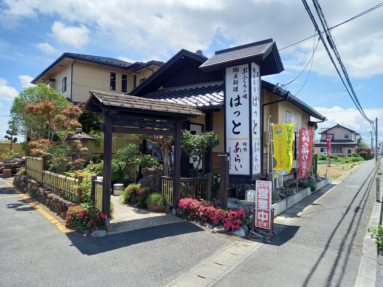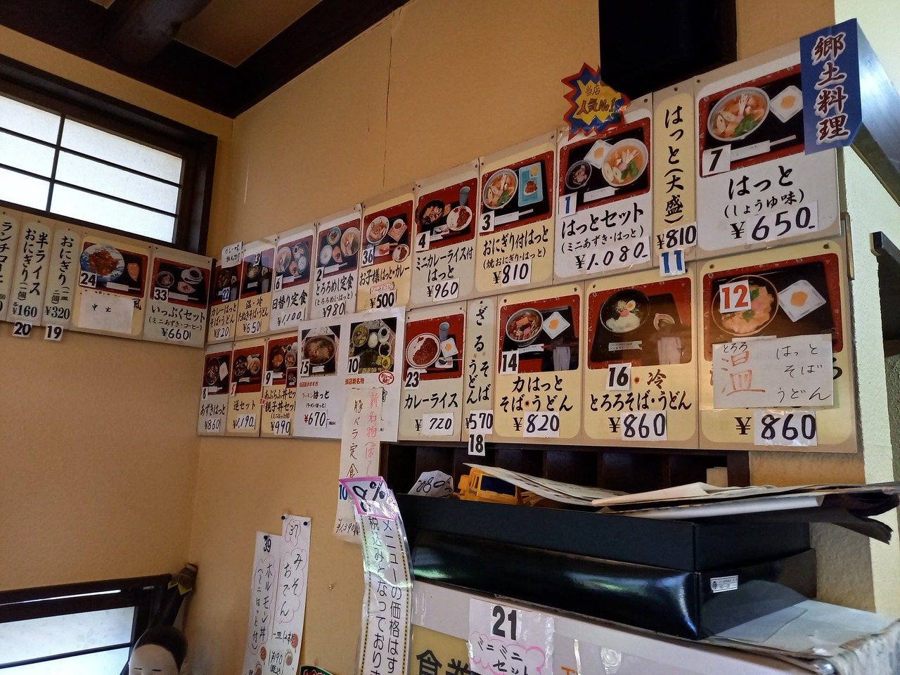 国道346号線沿いにあります。店内はテーブル20席位です。はっとがメインのお店です。はっとに郷土料理の油ふ丼が付いたセットもあります。一番人気は、はっとセット1080円で醤油はっとにミニあずきはっとが付いてきます。今回は基本の醤油はっと650円をいただきました。はっとは手延べで懐かしい感じがします。味はホッとする味でした。食後にはコーヒーのサービスがありました。これまたホッとでした。