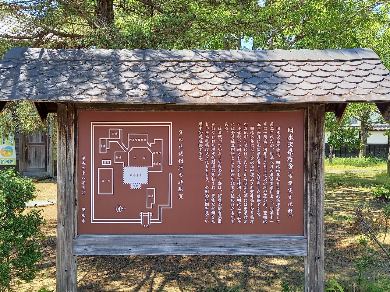 道の駅「遠山之里」の真ん前にあります。明治4年の廃藩置県で宮城県の北部と岩手県の南部の地域が「登米県」、翌明治5年に「水沢県」となった際、登米町に県庁が置かれました。期間は明治8年まででしたが、その後、裁判所として使われていました。平成3年に宮城県の誕生経緯や裁判所当時の資料を展示した「水沢県庁記念館」となりました。昔の宮城県庁の写真もあり懐かしかったです。