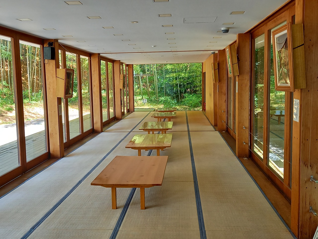 森舞台は、300年の歴史を誇る登米能(とよまのう)のメインステージとして平成8年にオープンしています。設計者は国立競技場や懐古館を設計した建築家隈研吾です。舞台は、随所に地元を意識して造られ、柱は地元産のヒバ、屋根は登米町特産の天然スレート葺きとなっています。展示室もあり、能装束や能面等をはじめ登米能に関する資料が展示されています。行った日には、能を練習しているところを見ることができ、良かったです。