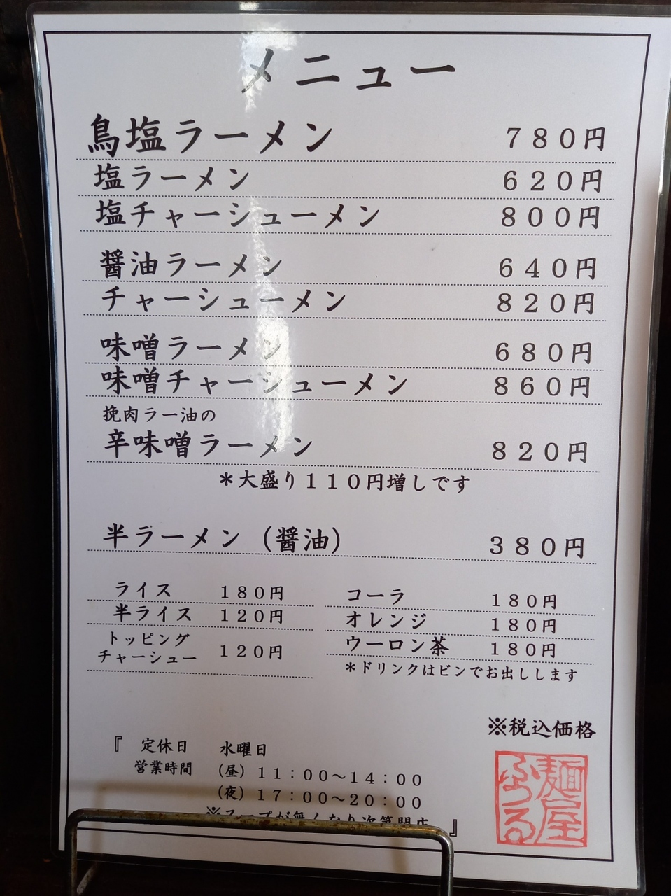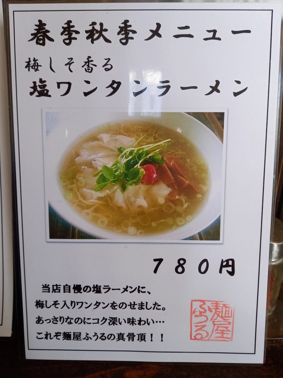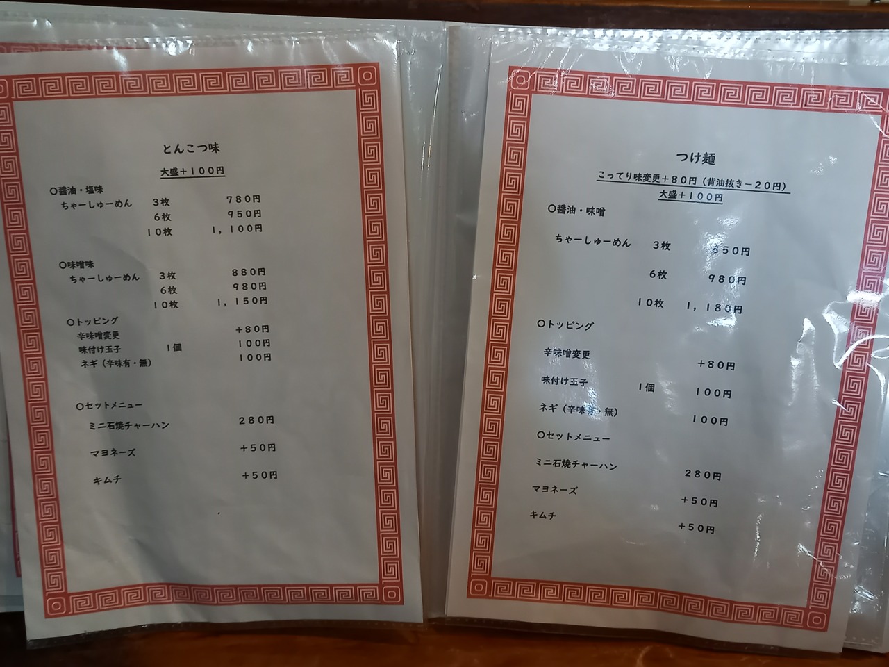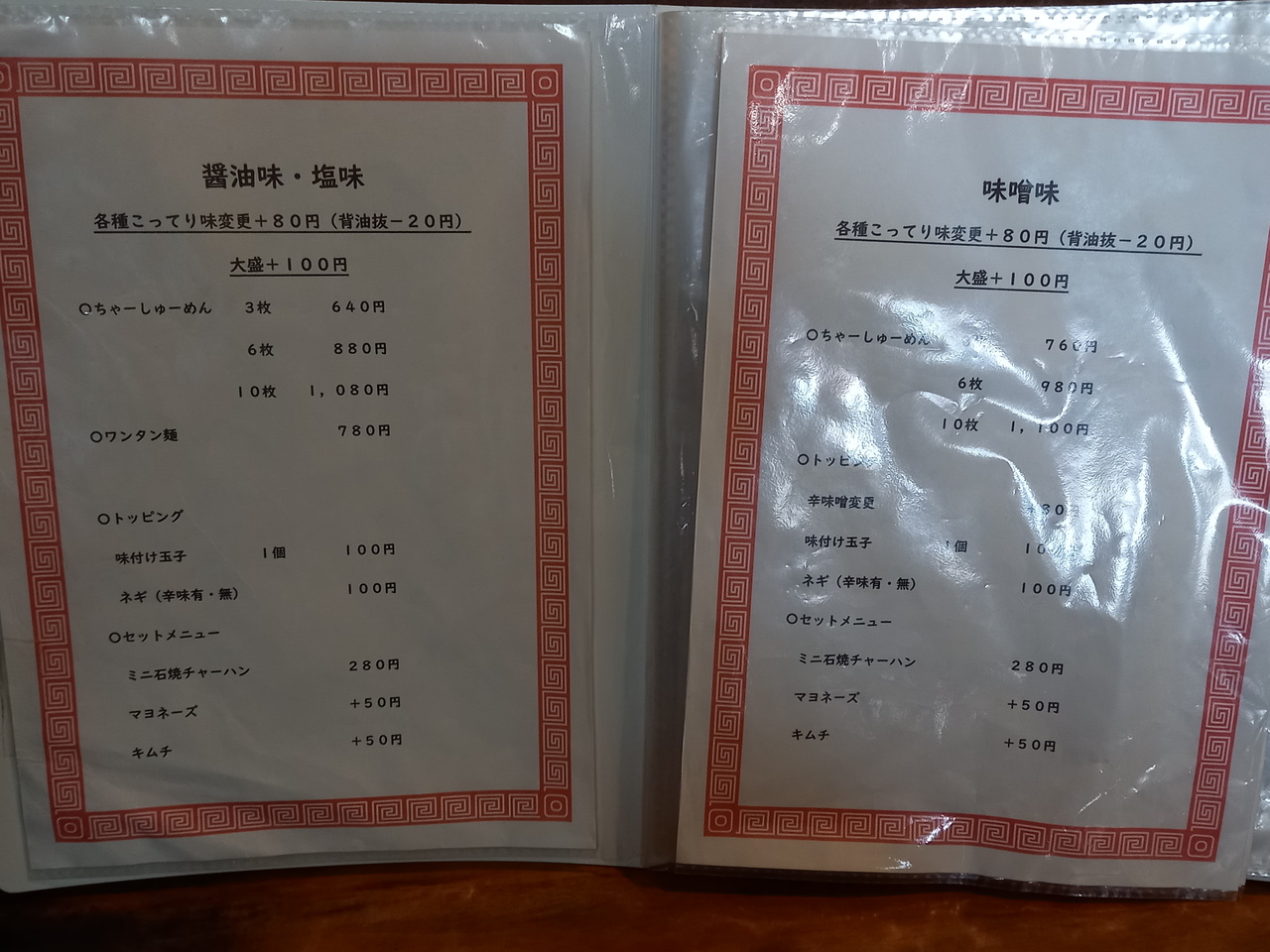 佐沼から米山に行く県道沿いにあります。カウンター3席、丸テーブル8席、テーブル14席です。メニューは、店名にもあるチャーシュー麺かワンタン麺、味はみそ、塩、醤油、豚骨から、濃さはあっさりコッテリから、麺は太麺細麺を選べます。面白いことに、チャーシュー麺はチャーシューの数を3枚6枚10枚から選べます。今回は、チャーシュー麺塩あっさり3枚640円をいただきました。塩でしたが甘味があり、飽きる感じの味でした