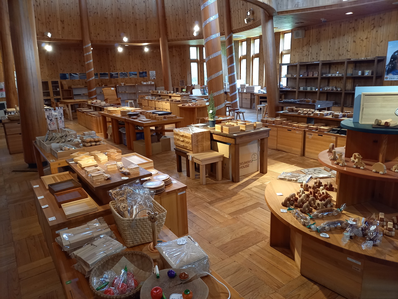 国道45号沿いの道の駅「もくもくランド」の中にある施設です。杉の間伐材で開発した矢羽クラフトや杉矢羽集成材など多彩な木工品を取り揃えています。木工クラフト品のデパートと言えるかもしれません。店内に入ると落ち着いた気分になります。