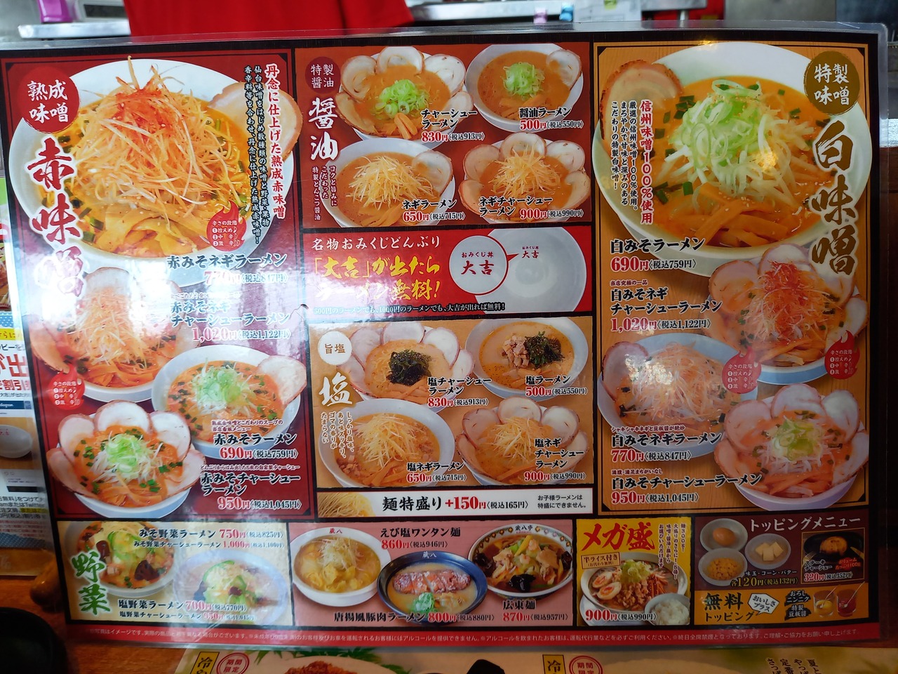 イオン佐沼店の近くにあります。カウンター10席、テーブル40席以上です。どんぶりの底付近におみくじがあり、「大吉」マークが出たらラーメンが無料になります。最後までスープ確認必要です。メニューは、ラーメン550円からあります。今回は、塩野菜ラーメン770円をいただきました。塩味濃い目で飲んだ次の日には最高です。おみくじの結果は残念ながら「中吉」でした。次回台湾ラーメン825円をいただきたいと思います。