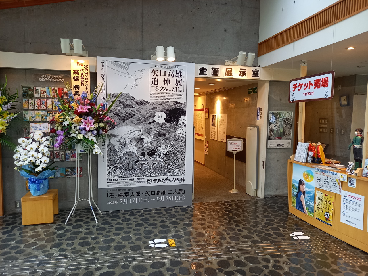 記念館は登米市中田町石森にあります。石ノ森章太郎の名は、ふるさとから取っていると思います。記念館のすぐ近くには生家もあります。記念館の常設展示は、石ノ森章太郎の足跡や漫画同士からの思い出の品が展示されています。代表作の仮面ライダーやサイボーグ009などの漫画本も読み放題です。言った時の企画展示では、去年亡くなられた矢口高雄さんの追悼展をしてました。最近の話題は現在放映中のおかえりモネの撮影が、この記念館の暖炉付近や中庭で行われた事です。