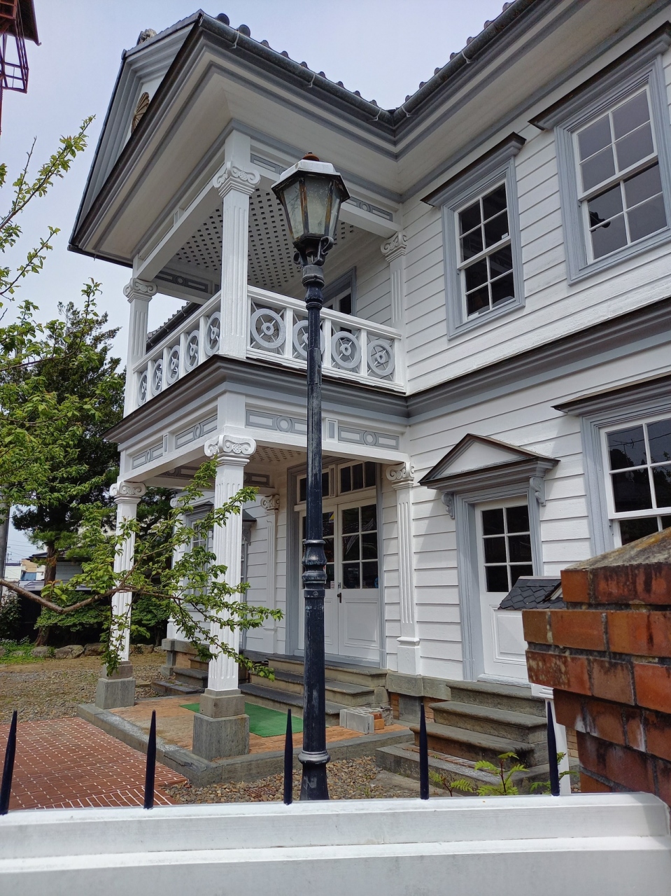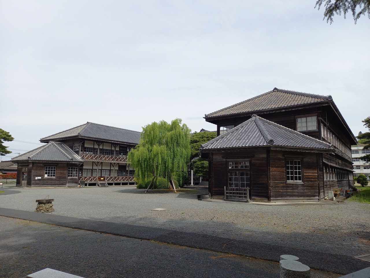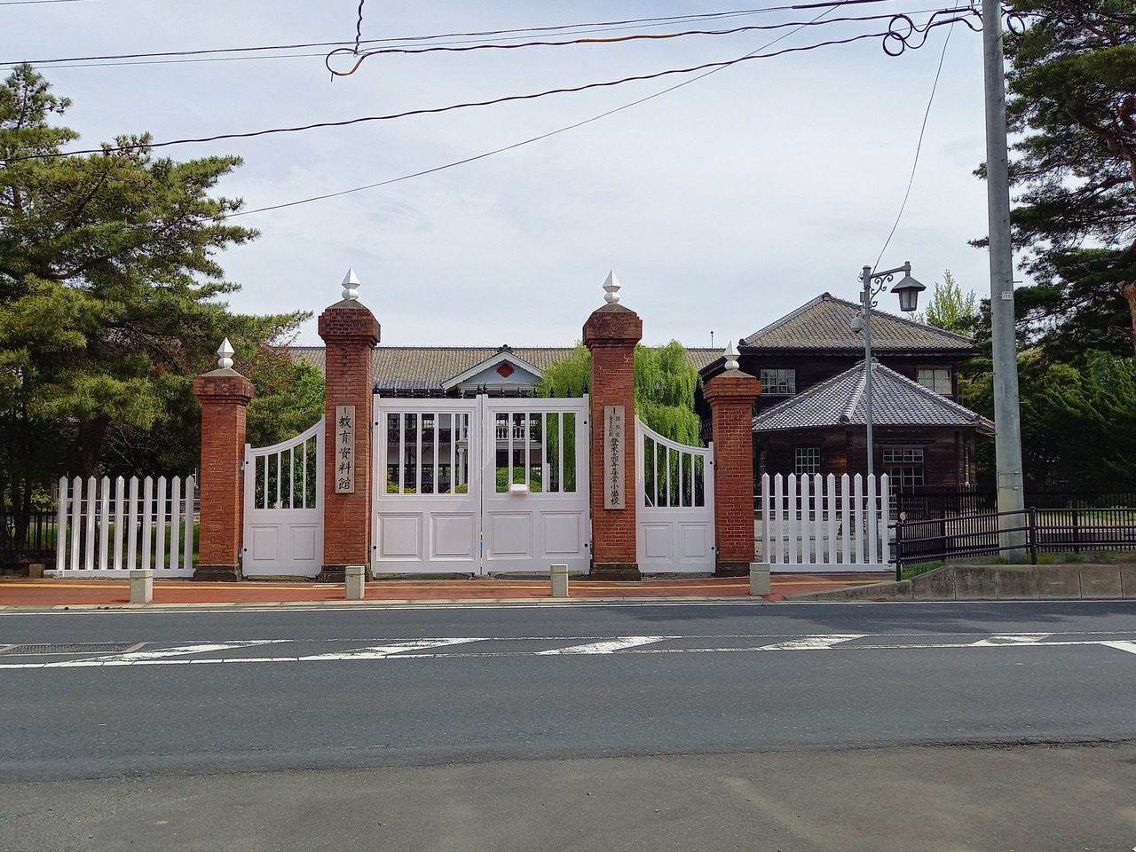道の駅「遠山之里」に隣接しています。もともとは明治21年に、二年半をかけて完成した旧登米高等尋常小学校です。昔、NTTドコモのCMにも出てました。おかえりモネクランクインの発表会の場所にもなっています。建物は木造二階建てで、コの字形になっています。校舎正面中央にバルコニー式の玄関があり、おしゃれです。教室の窓は両側にあり、当時大変貴重だった、板硝子を使用しています。明治の洋風学校を代表する建築物として昭和56年に重要文化財に指定されています。