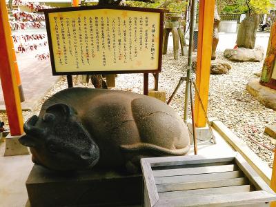 榴岡天満宮は、平安時代に山城国(現在の京都府)に御創された後、5度程の遷座を経て今の地に落ち着いています。祭神は学問・政治の主祭神、菅原道真公であり、拝殿の前には、丑年生まれの道真にあやかって「撫で牛」があります。1795年に起こった落雷により、本殿・拝殿・楼門・神楽殿など多くの建物を焼失しており、現在の社殿はその頃に再建されたもので、明治9年には、明治天皇が参拝されています。