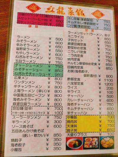 (紅龍菜館)。お奨めはワンタン麺と上海ラーメンの様です