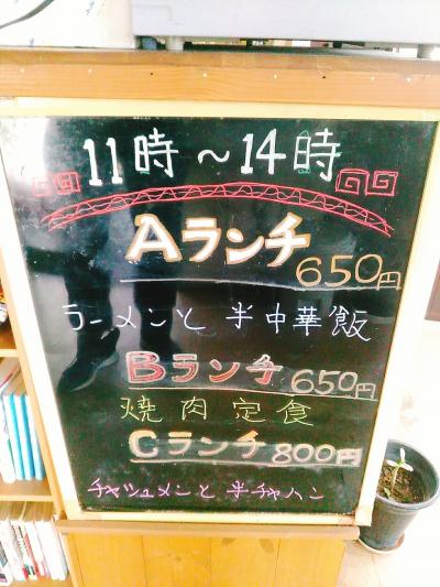 佐沼から登米に向かう県道沿いにあります。登米祝祭劇場の近くです。店内はテーブル45席位です。お奨めはワンタン麺750円と上海ラーメン800円の様です。メニューはラーメン500円からあります。日替わりランチは3種類です。行った日は、Aランチがラーメンと半中華飯で650円、 Bランチが焼肉定食で650円、Cランチがチャーシュー麺とチャーハンで800えでした。今回は、Aランチをいただきました。ランチはサラダと漬物がつきました。ラーメンはあっさり、中華飯は餡緩めの家庭的な味でした。