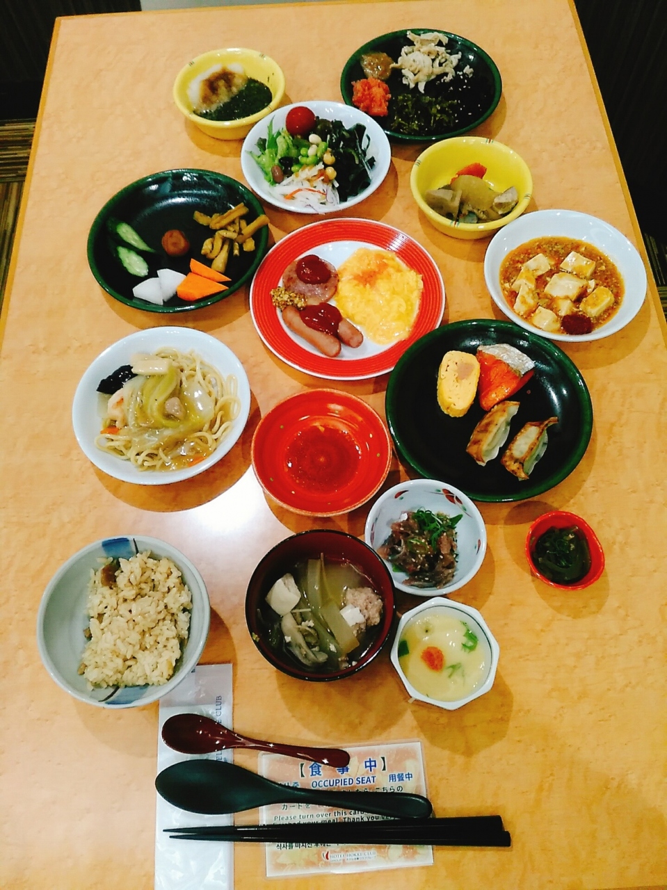 駅前4丁目交差点近くにあります。11階建で、別館もあるので大きいです。客室も広々していました。地下1階には大浴場があり、伸び伸び入れます。疲れを癒せます。朝食バイキングが充実しています。福岡を中心に郷土料理が一気に食べられる。明太子はスクランブルエッグ、茶碗蒸しにも入っていました。中華麺はチャンポン麺か麻婆麺にして食べられます。朝から食べ過ぎ注意です。