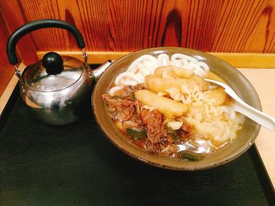 博多バスターミナルの地下1階にあります。カウンター席が多いです。今回は、肉ごぼ天730円をいただきました。出汁は甘めの良い出汁でした。うどんは堅さ普通を頼みました。店では中麺と言っていました。うどんは持ち上げようとすると切れる感じです。継ぎ足し用の出汁が付いてきます。うどんが出汁をすって少なくなるからだと思います。ごぼ天は小さめのかわいいのが5個位乗っていました。肉は甘めで、柔らかかったです。