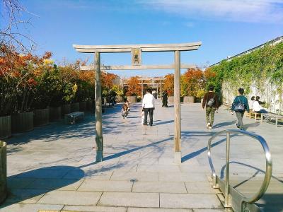 鉄道神社は東急ビルの11階にあります。鉄道神社への約50mの参道には三つの鳥居があり、星門で魔を払い厄をよけ、福門で福を招き、夢門で良縁を結びと言われています。一段高い展望デッキは地上約60mの高さで、北側海方面の景色がお奨めです。