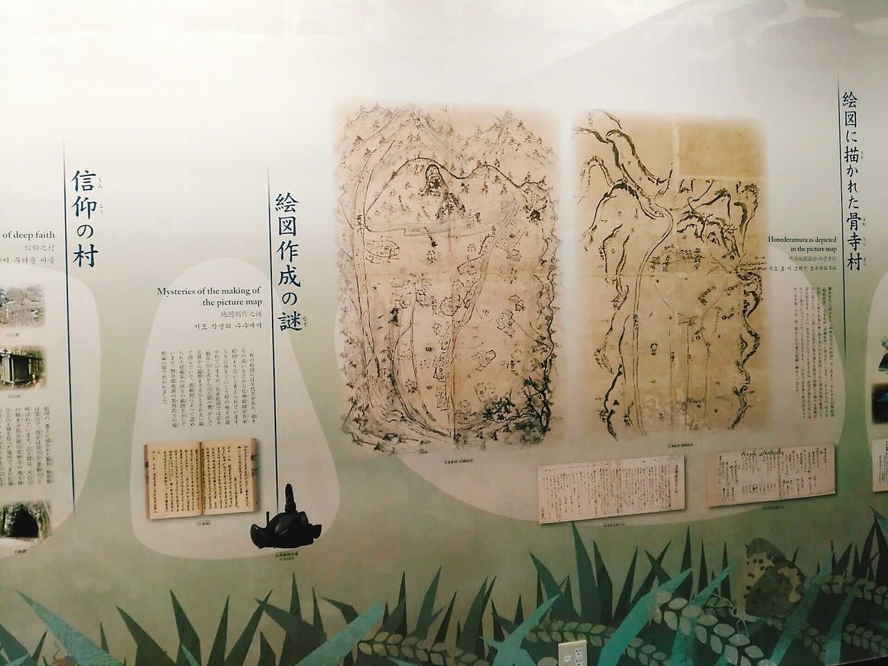 (骨寺村荘園交流館) 資料展示の他、地場産品を買うことができます。