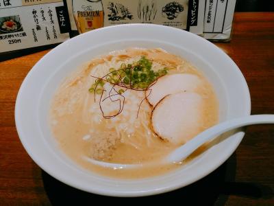 スープは白濁濃厚で喉に残る感じです。麺は細麺、刻み玉ねぎの食感が面白いです。鶏チャーシューは厚目で美味しかったです。
