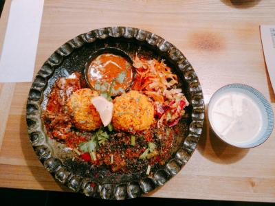 今回は三種あいがけご飯大盛り(1300円)をいただきました。パクチーが効いてて付け合わせの漬け物もカラフルで見た目良かったです。辛さは程よい辛さでクセになりました。復活を待ちたいです。- 旅行時期
