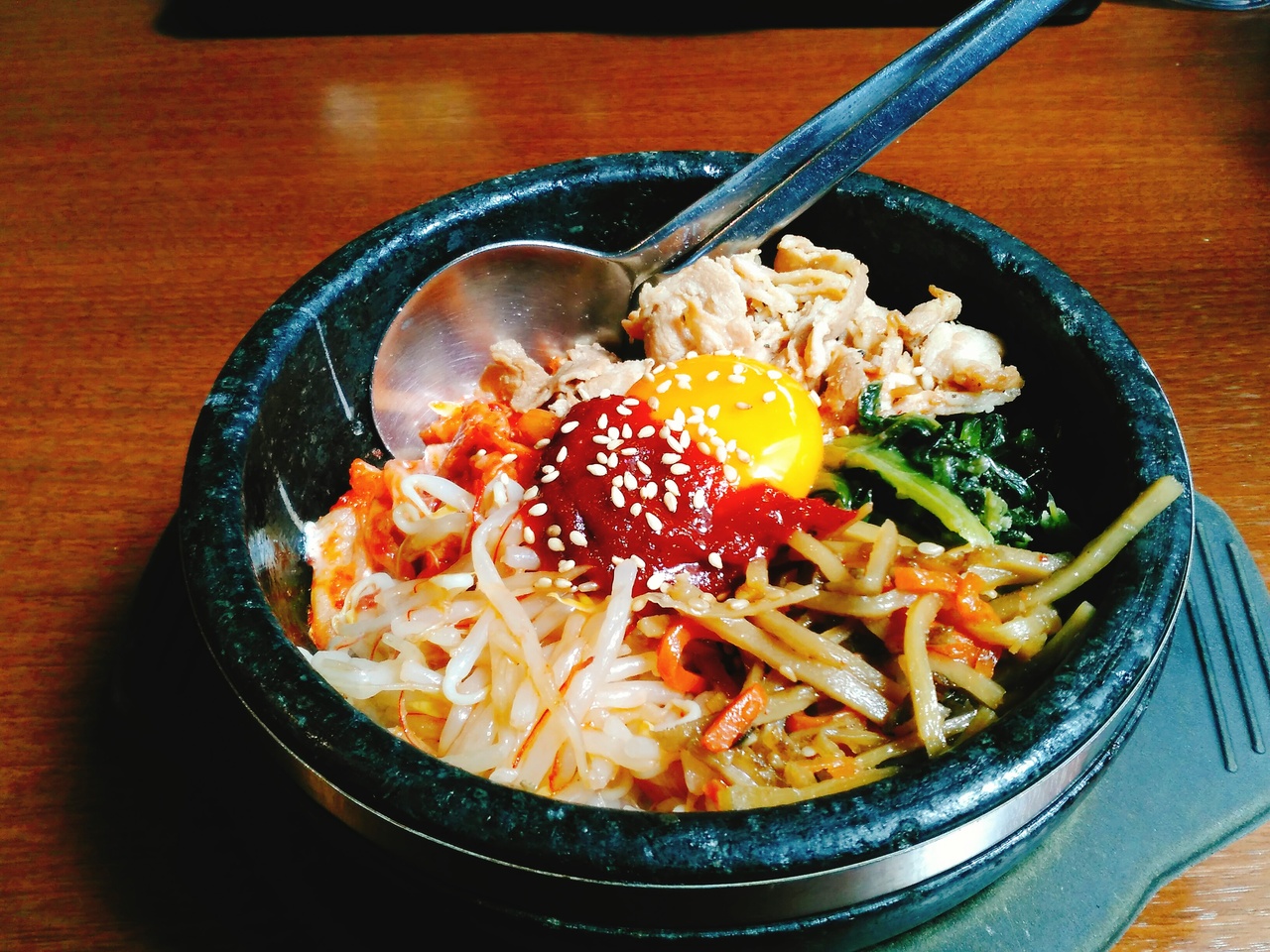 石巻市の蛇田にあります。メニューは、石焼きビビンバや炒飯を基本としためん類のセットもの、焼き肉類の定食とジャンルは広いです。日替わりランチは1000円(税込)がお得なようです。今回は、評判が良いと聞いていた石焼きビビンバ650円(税抜)をいただきました。最後まで熱々で美味しくいただけました。