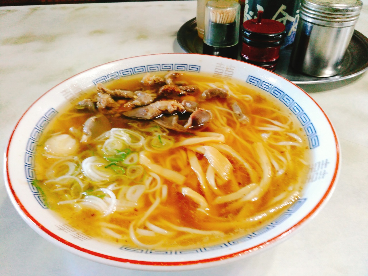 ニューグランドホテルの斜め向かいにあります。駐車場は店の向かいに大きいのがあります。開店前には10人並びました。メニューは店頭に貼り出してあるだけなので、店頭でオーダーします。今回は、スタミナラーメン550円をいただきました。お店ではトリモツラーメンをスタミナと呼んでいます。人生初のトリモツラーメンです。麺は細麺で白いです。スープの脂が凄いです。日曜もやってますが、第2、4、5日曜だけは休みです。