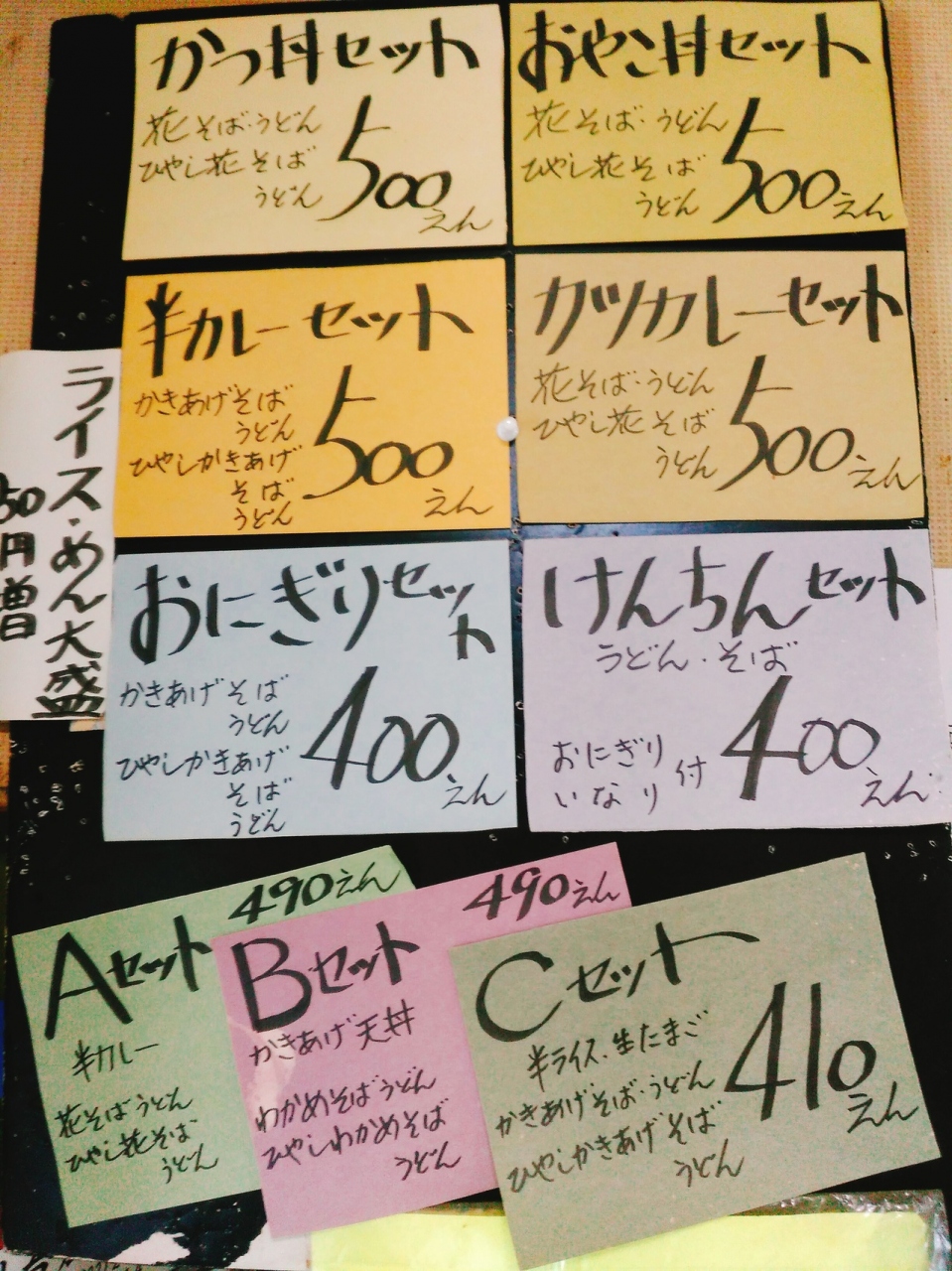 (わたべや) 麺単品は230円から、ご飯ものと麺のセットが400円からあります