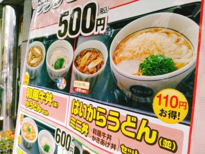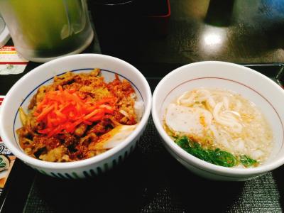 仙台市営地下鉄北四番丁駅の近くです。ランチセットが3月にリニューアルされていて、500円、600円、690円の3種類があります。50今回、いただいたのは500円のランチセットで、牛丼とミニうどんのセットです。親子丼が売なのにセットにつられ牛丼を食べてしまいました。でも、満足でした。