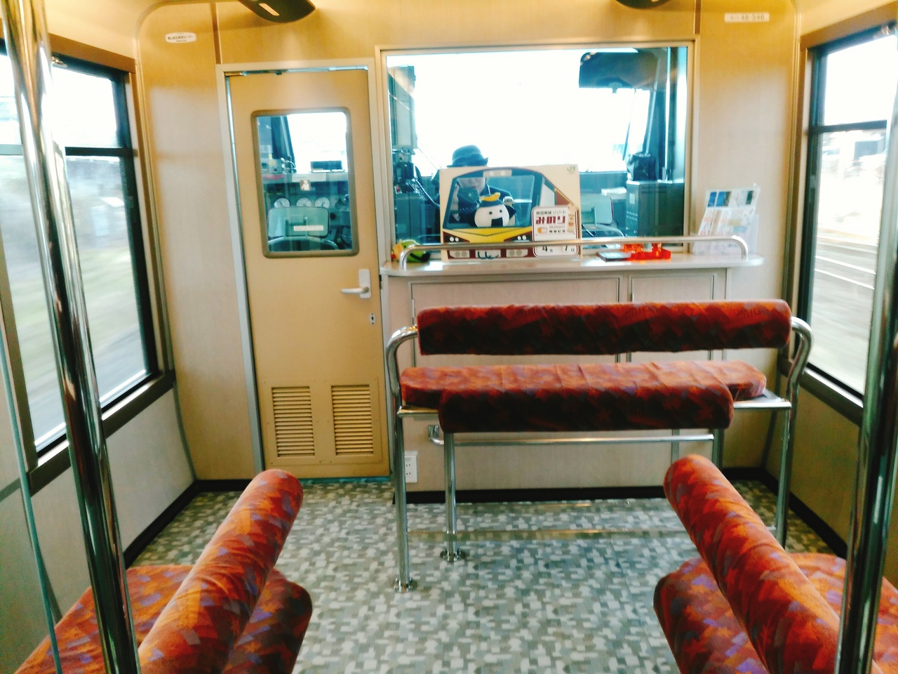 乗車券の他に指定席券が必要です。乗った列車は3両編成で、1号車と3号車はそれぞれ展望スペースがあります。窓が広いので運転士気分が味わえます。みのりには車内販売があります。2号車が車内販売後の休憩場所兼スタンド的売店になるようです。1号車と3号車には記念スタンプも置いてあります。