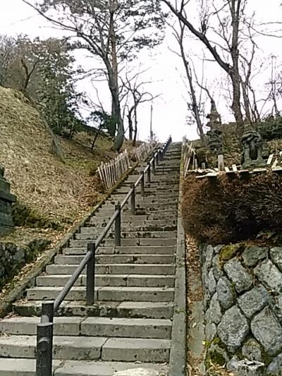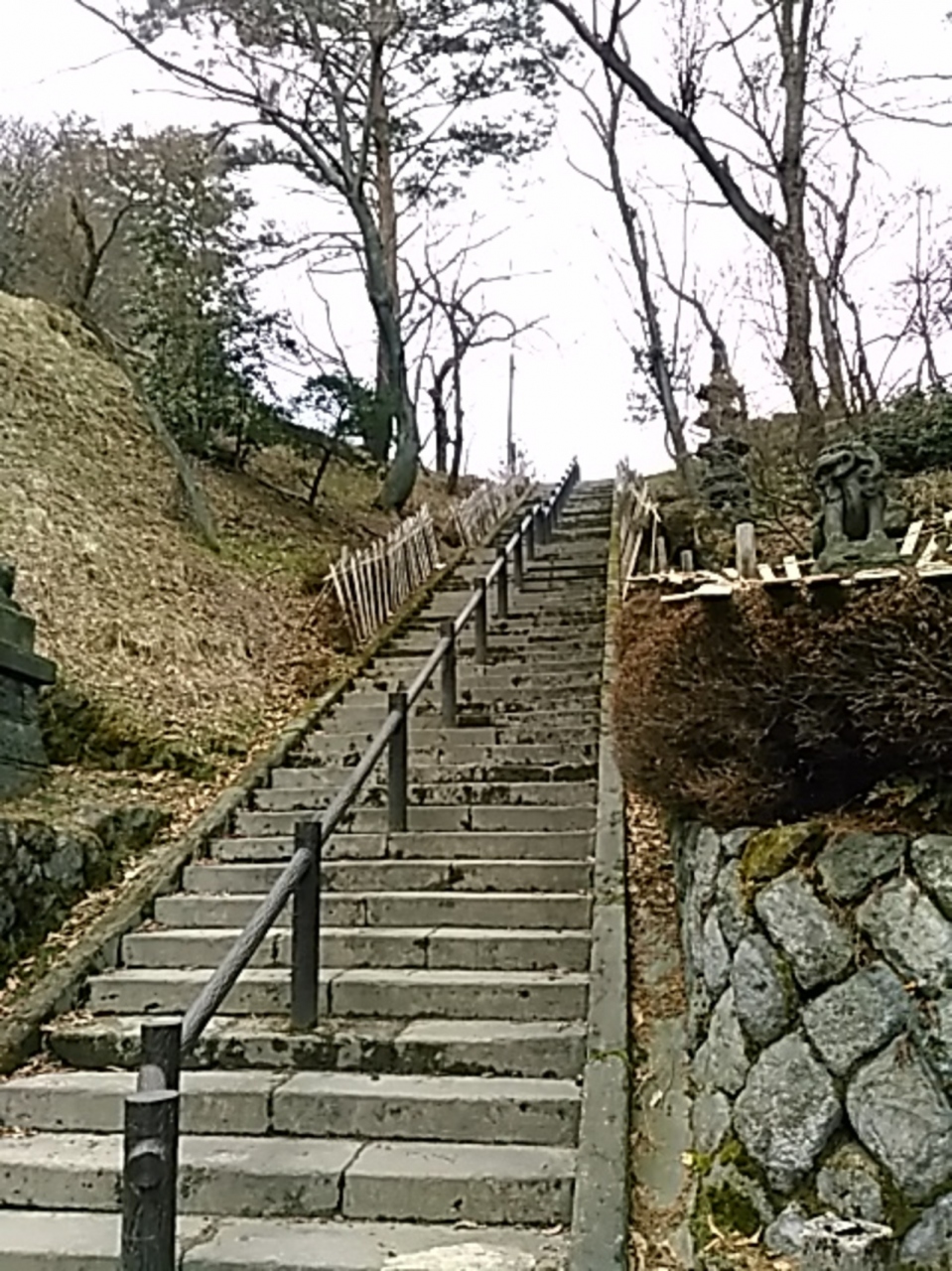 • (温泉神社) 冬は雪で滑って危険なので階段は通行禁止になります