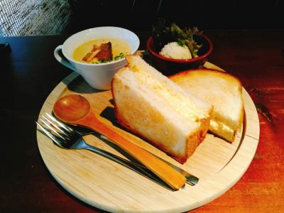 東一市場内にある喫茶店です。席は2階にあり、テーブル四つの14席です。店内は木目調で落ち着いていて、程よい音量で音楽が流れ、居心地は良かったです。ランチセットはトースト五種類から一つ選び、ミニサラダ、スープ付きで750円です。今回は、卵サラダサンドのランチセットにしました。トーストは焼きたてサクサクです。量は少な目なので、女性には良いかもです。