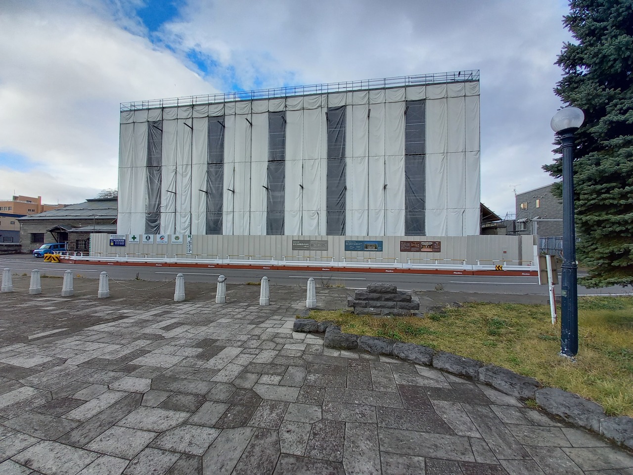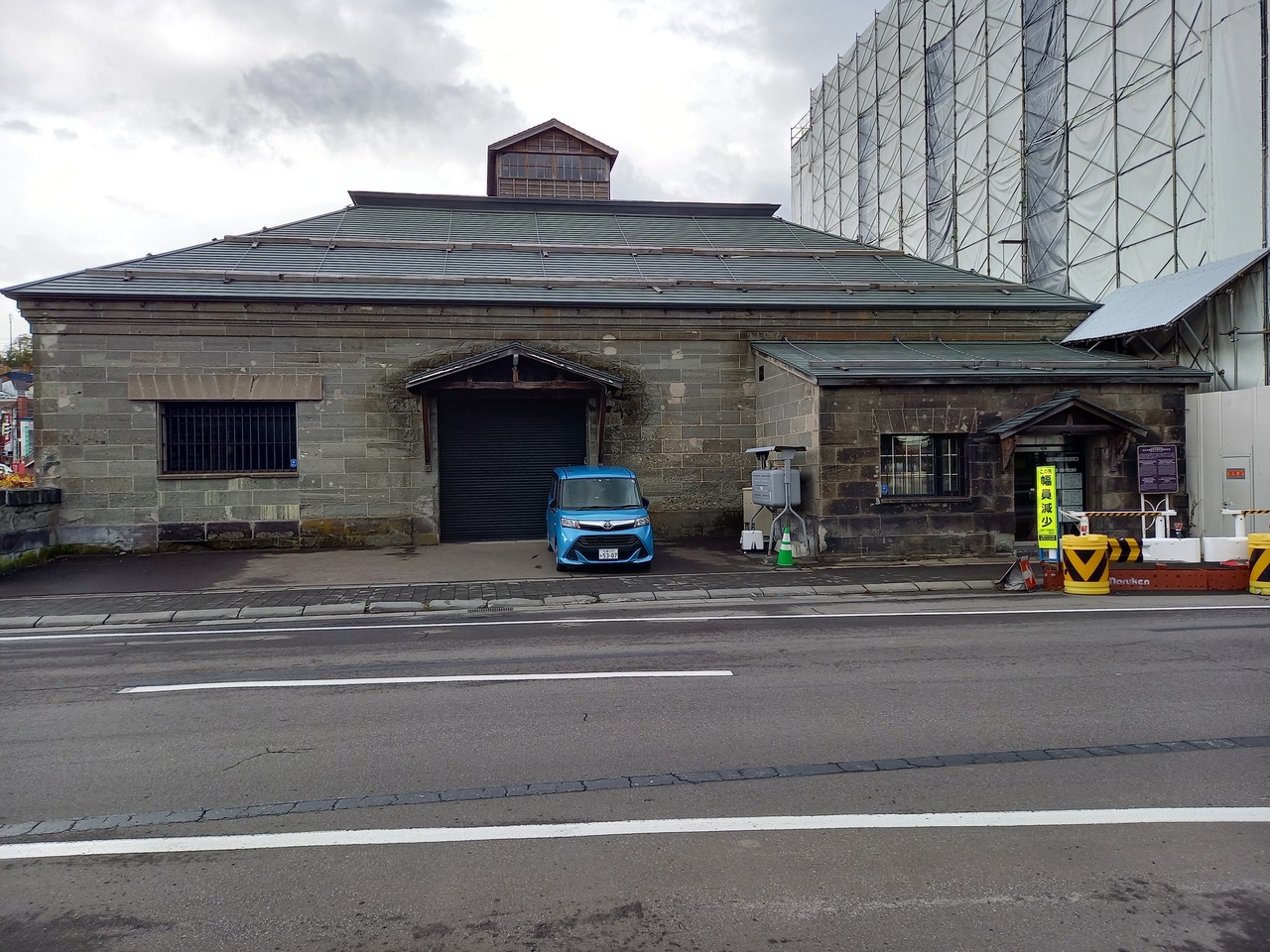 旧日本郵船株式会社小樽支店の隣にある残荷倉庫は、明治39年に建てられた石造の建物です。小樽市の指定歴史的建造物になっており、重厚な感じです。近年は何にも使われていなかったようですが、隣の小樽支店の改修工事の現場事務所として使われてました。